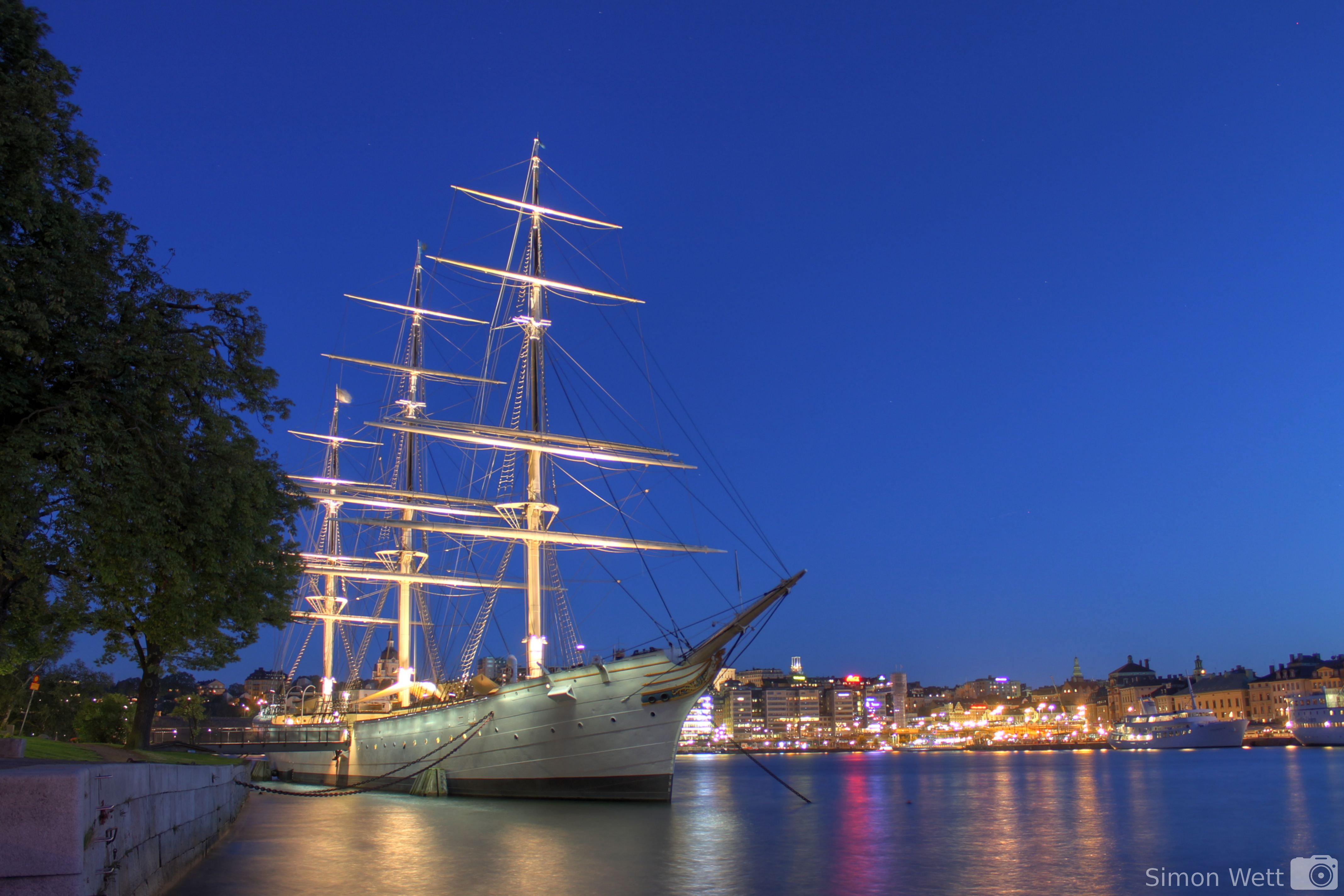 Ursprünglich hatte ich den Plan zum Sonnenuntergang und der blauen Stunde noch durch die Stadt zu gehen und nach interessanten Motiven zu suchen, doch ich hatte nun das Gefühl, das interessanteste Motiv läge hier direkt vor mir, also fotografierte ich an diesem Abend nur von Skeppsholmen aus.