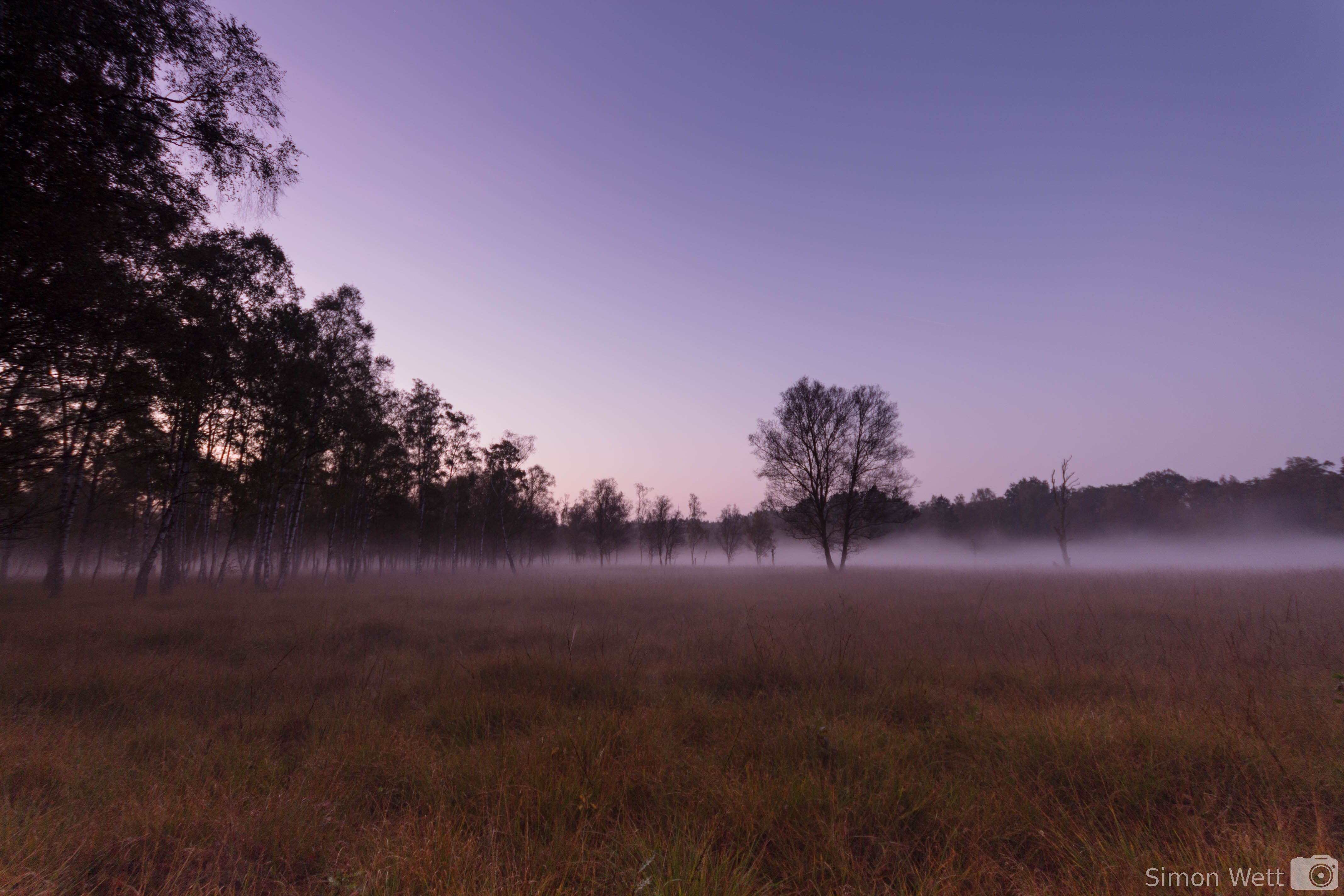 Am Samstagmorgen, pünktlich zum Sonnenaufgang war ich einmal wieder dort um einige frühherbstliche Morgennebel-Bilder zu machen. Dafür hatte ich mir die Wiese ‚Im Großen Brook‘ am Langenreiher Weg ausgesucht und ich wurde nicht enttäuscht: