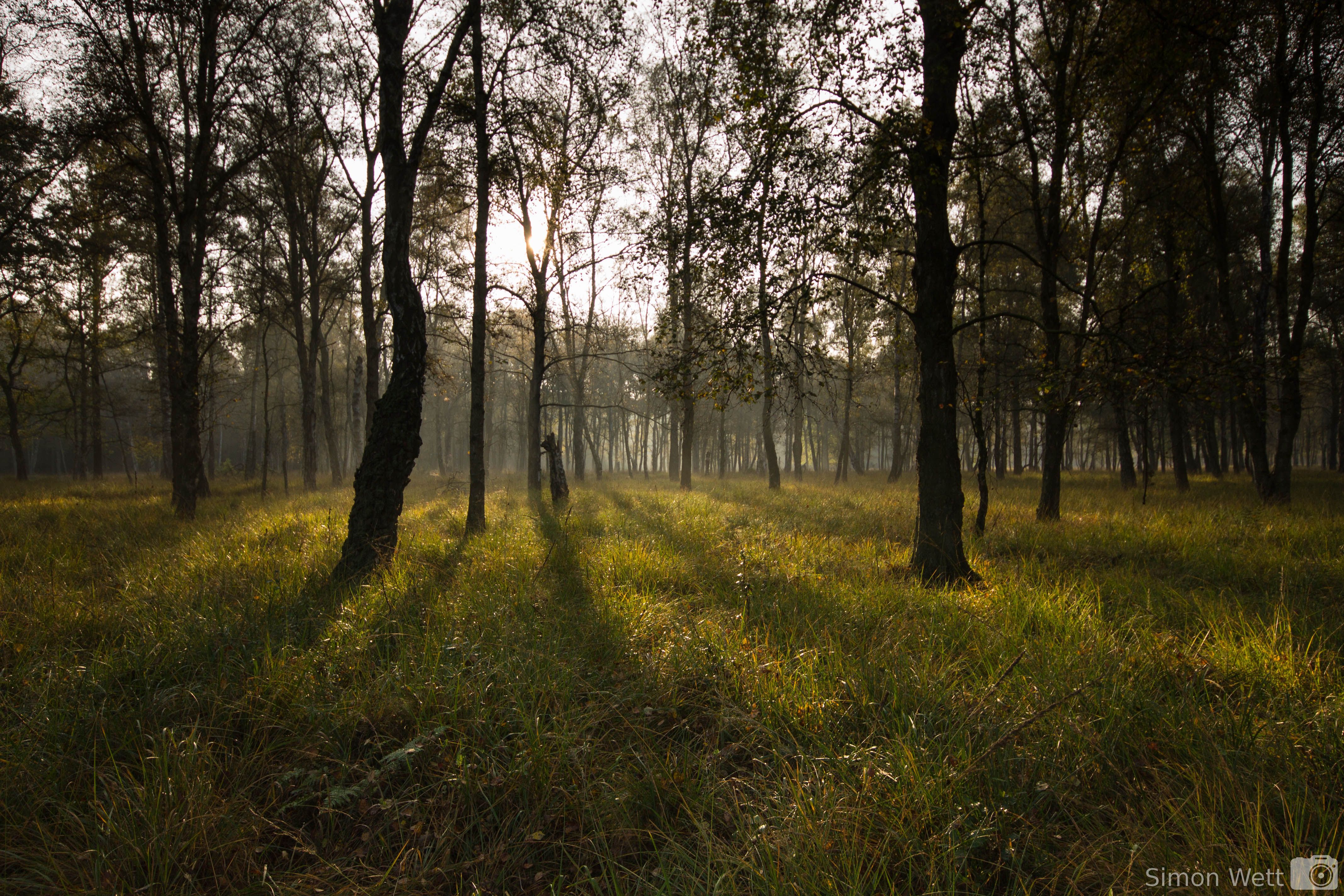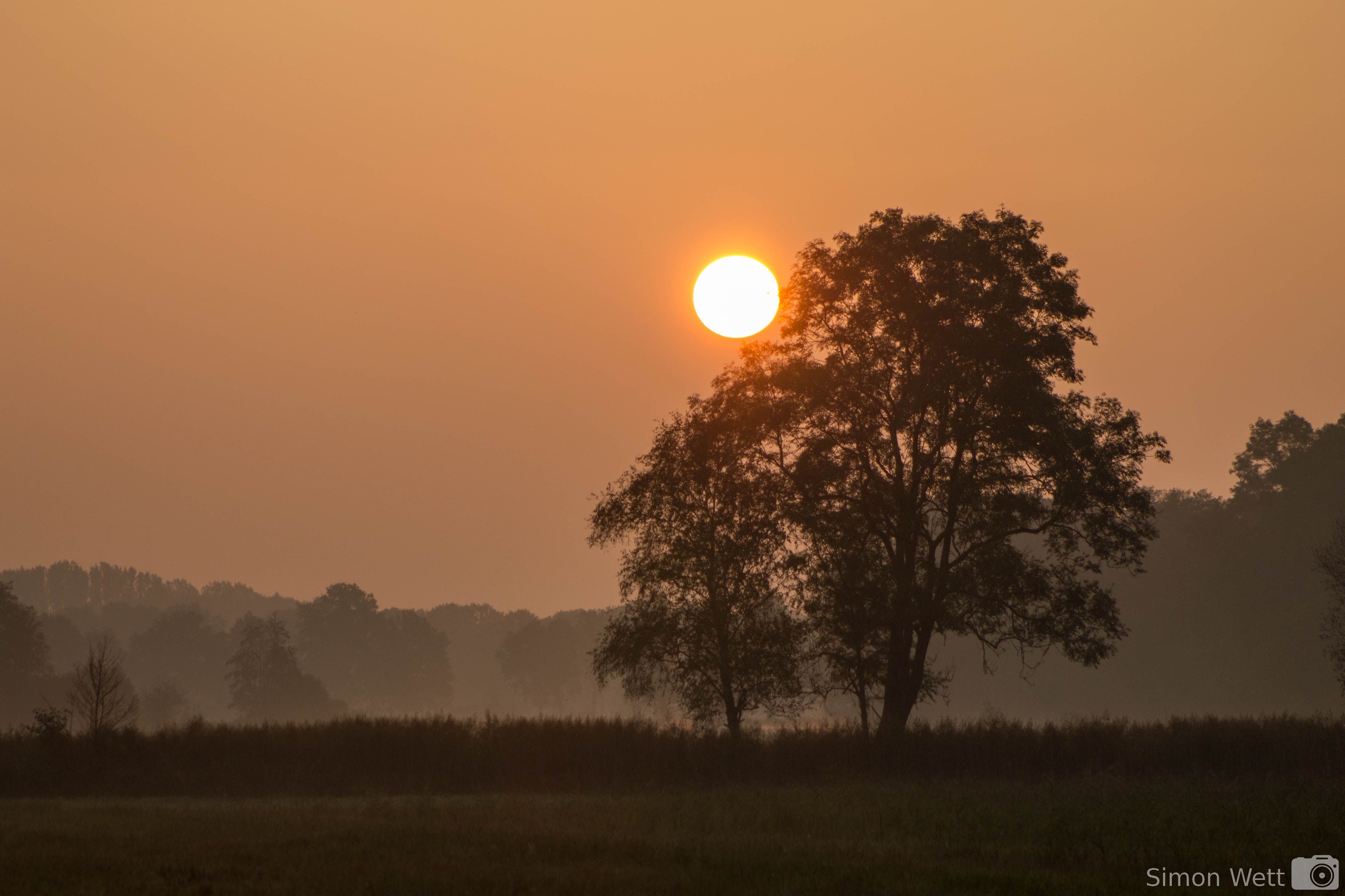 Nach einigen Nebel-Aufnahmen ließ sich schließlich ca. um 7:30 die Sonne hinter den Bäumen blicken.