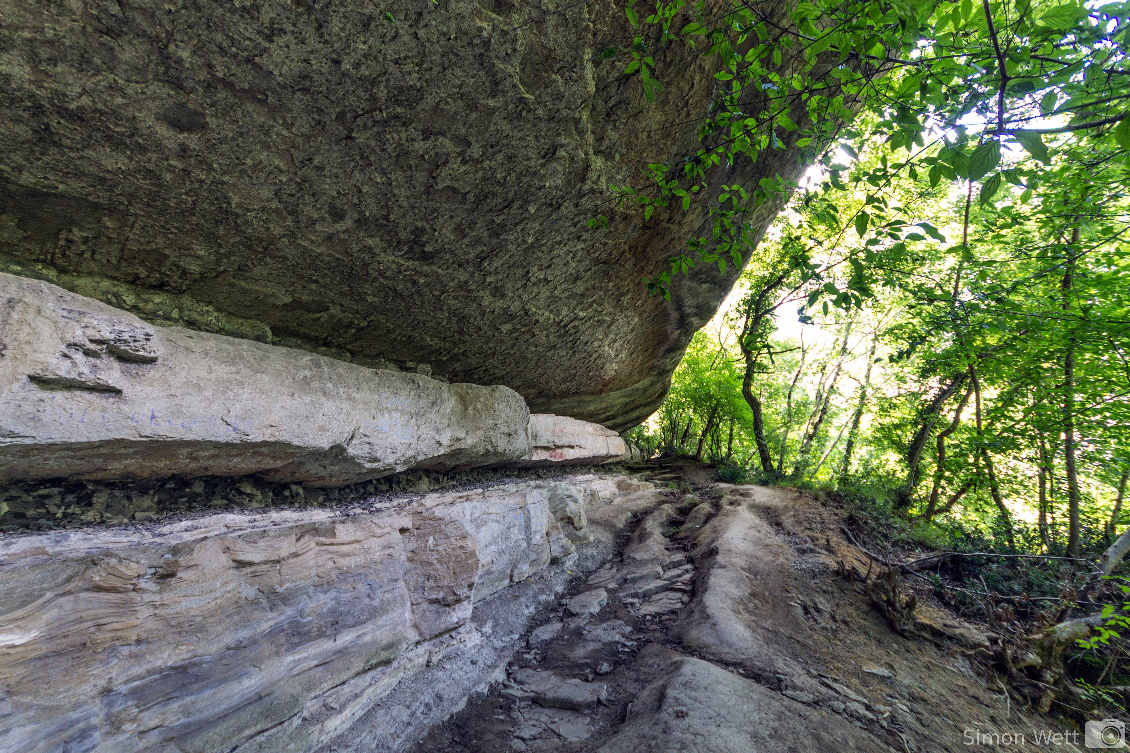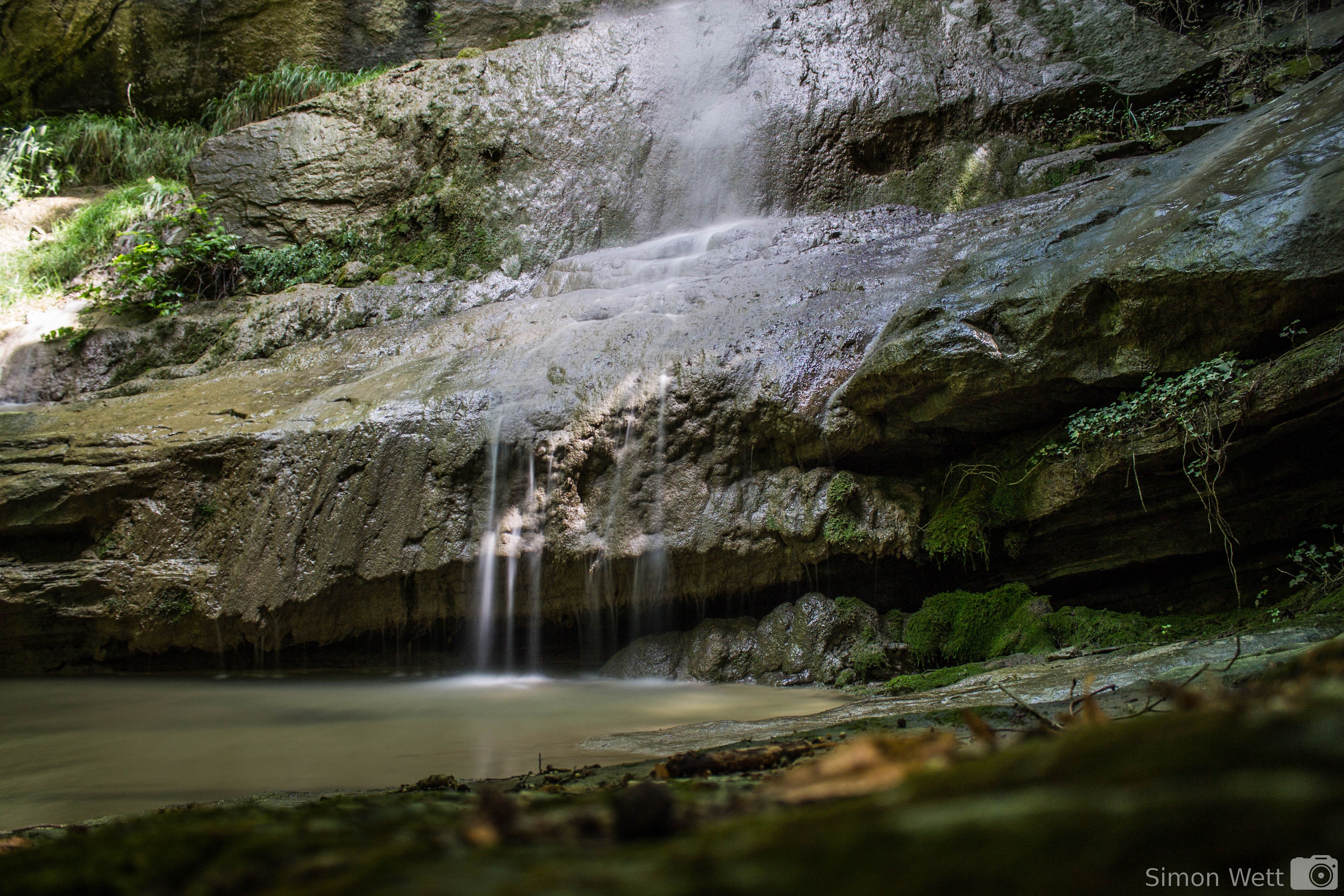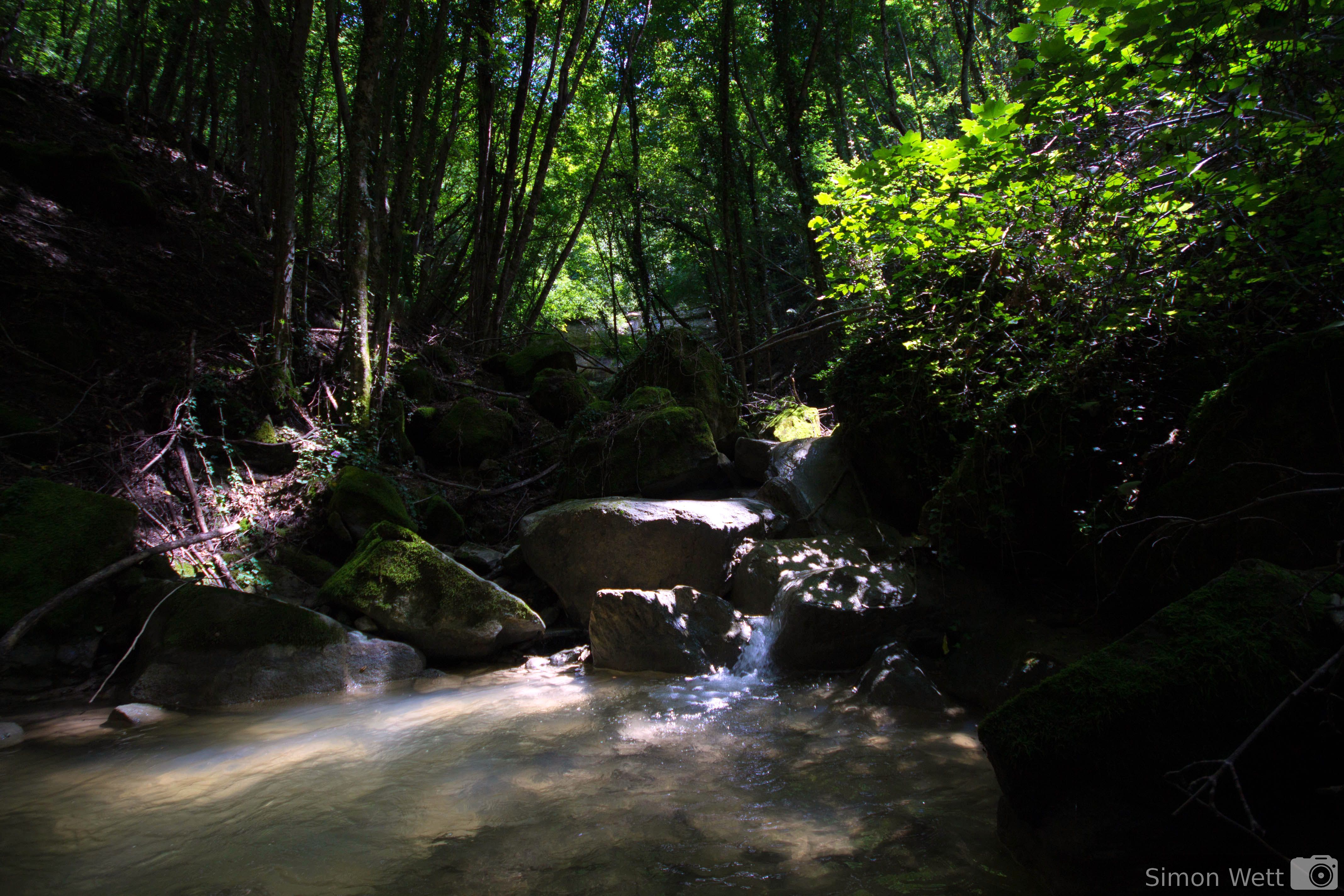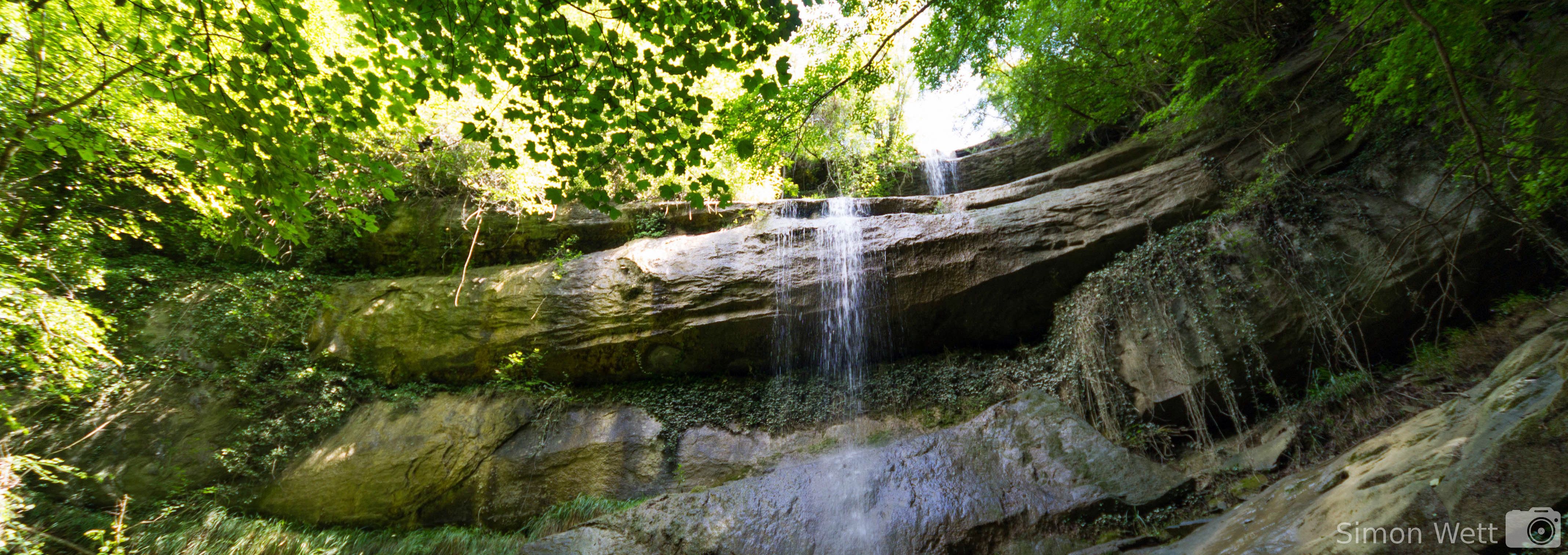 Ansonsten zeigte sich das Wetter, wie man es von Italien eigentlich erwartet: größtenteils sonnig. Allerdings, aufgrund der Höhe (von ca. 500 m ü. NN.) angenehm kühl und, wie gesagt, öfters durch erfrischende, kurze Regenschauer unterbrochen. Ein Stück von unserem Haus entfernt, im Wald befand sich eine steile Felswand von Schichtgestein, die teilweise durch Überhänge und schöne Wasserfälle unterbrochen war.