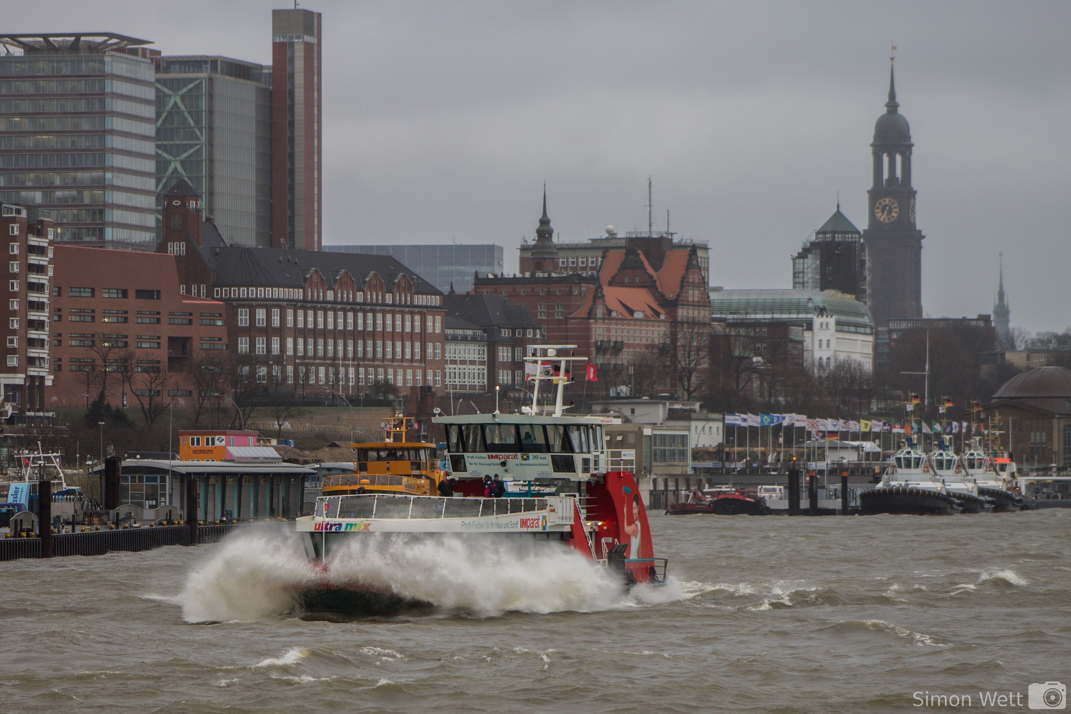 Gemessen an dieser norddeutschen Definition war das, was Sturmtief ‚Niklas‘ heute über Deutschland gebracht hat höchstens ein laues Lüftchen. Das hat allerdings den Zugverkehr in Deutschland teilweise zum Erliegen gebracht und auch in Hamburg seine Spuren hinterlassen. Im Hafen ist das Ganze sehr schön an den Gischtwolken der Hafenfähren zu sehen. Ich bin heute direkt aus der Uni noch in den Hafen gefahren und habe ein paar Bilder gemacht.