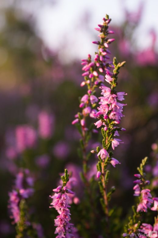 Dafür schien nun die untergehende Sonne sehr schön auf die blühende Heide, was die kleinen lila Blüten noch deutlicher zur Geltung brachte und ich bin für ein paar Makroaufnahmen auf dem Boden herumgekrochen.
