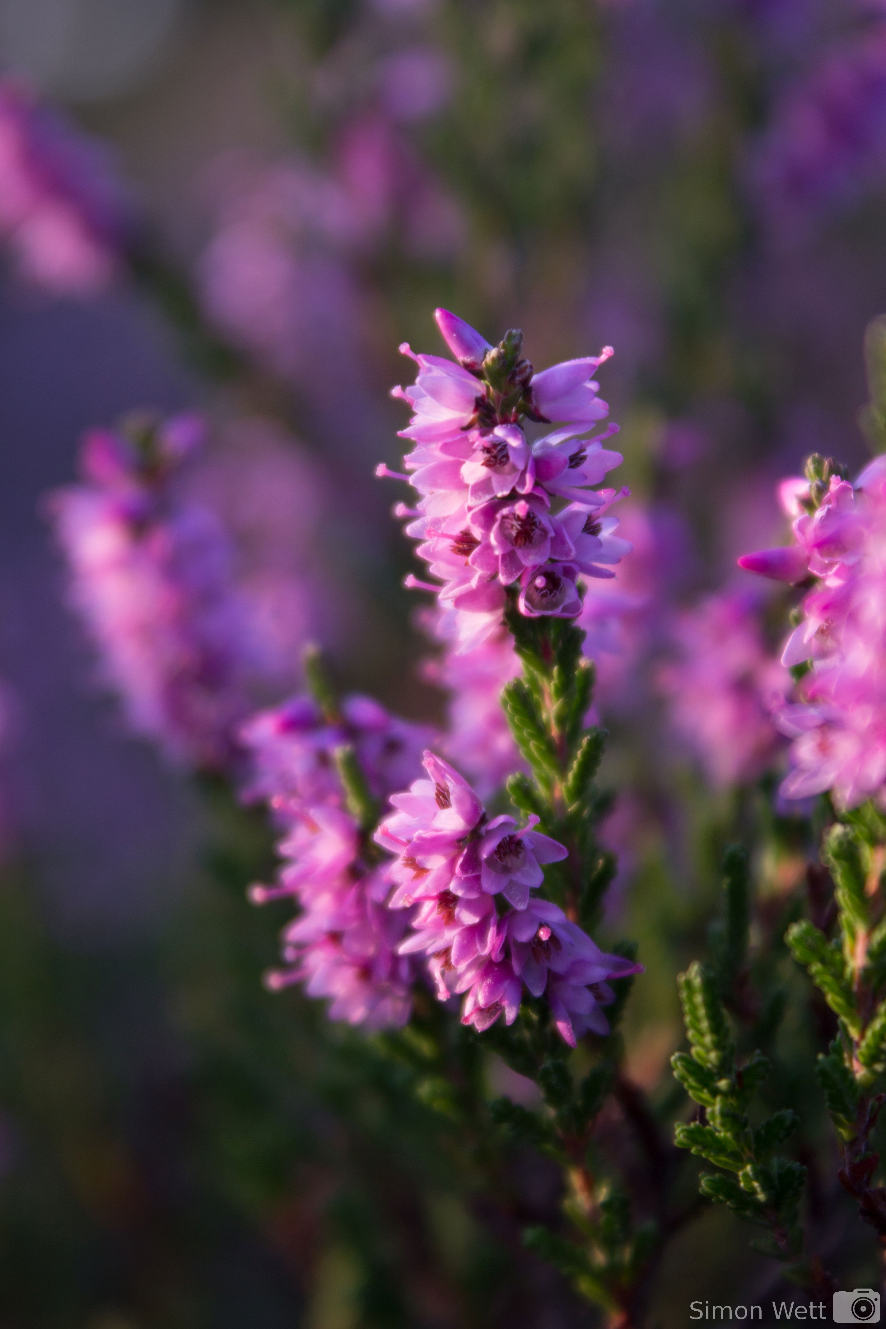 Dafür schien nun die untergehende Sonne sehr schön auf die blühende Heide, was die kleinen lila Blüten noch deutlicher zur Geltung brachte und ich bin für ein paar Makroaufnahmen auf dem Boden herumgekrochen.