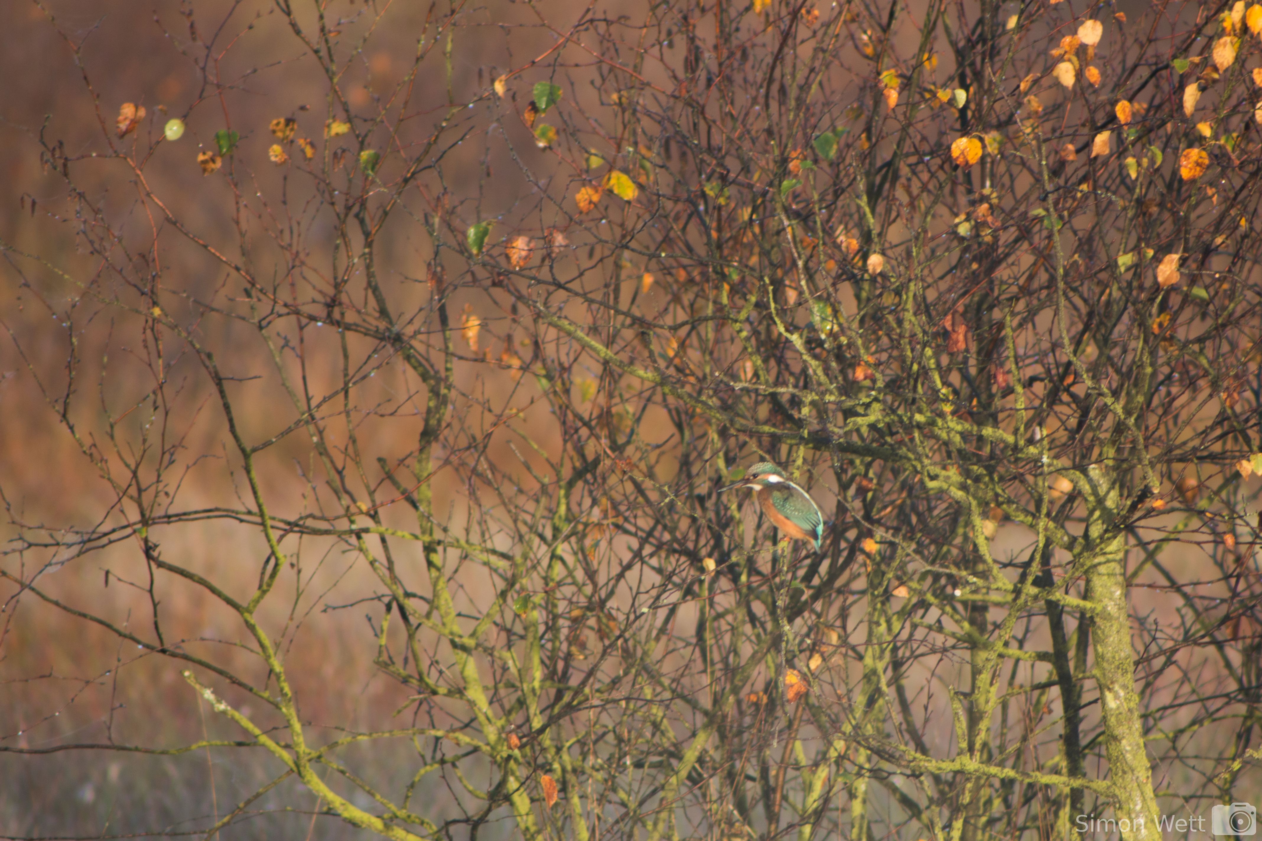 Diese toten Baumstämme sind natürlich auch ideale Gelegenheiten für Vögel, die den kleinen Fischen im flachen Wasser auflauern und so konnte ich an jenem Morgen tatsächlich meinen ersten Eisvogel fotografieren (auch wenn er noch recht weit weg war und das Foto mich nicht komplett überzeugt).