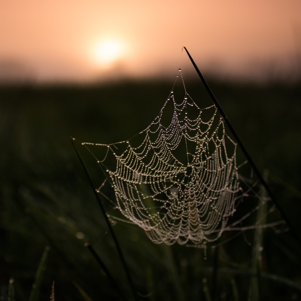 Bei so geringen Temperaturen sind auch viele Tiere in der Wiese noch sehr träge und warten darauf, dass die ersten Strahlen der Sonne sie wärmen. Diese Spinne allerdings war schon sehr aktiv und krabbelte unermüdlich in ihrem taugetränkten Netz herum.