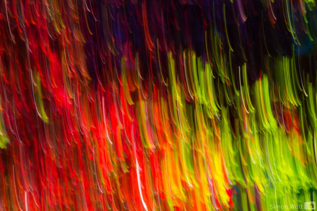 Einige Bilder sind technisch gesehen einfach schlecht. Schlecht fokussiert, schlecht aufgebaut oder wie hier schlecht belichtet. Allerdings können aus solchen Regelbrüchen durchaus interessante Fotos entstehen. Dieses impressionistisch anmutende Bild zeigt ein buntes Blätterdach. Beim Fotografieren habe ich allerdings durch eine kleine Blendenöffnung eine lange Belichtungszeit erzielt und beim Auslösen die Kamera auf und ab bewegt, so dass die Sonnenstrahlen durch die Blätter auf dem Bild wie Pinselstriche verwischen.