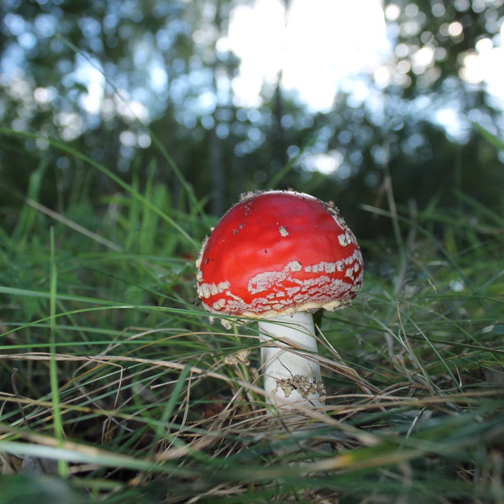 So z.B. auch dieser kleine Fliegenpilz im Hamburger Naturschutzgebiet Boberger Dünen. Für das Fotografieren von Pilzen eignet sich grundsätzliche eine sehr tiefe Position der Kamera. Am besten legt man sie dafür auf den Boden. Nun ist es allerdings schwierig durch den Sucher zu blicken… Um das zu vereinfachen gibt es mehrere Möglichkeiten, z.B. ein Winkelsucher (spiegelt das Sucherbild um 90° nach oben) oder ein klappbares Display. Beides besitze ich allerdings nicht, so wäre mir nur die Option geblieben mich flach auf den Boden zu legen. Glücklicherweise kam mir hier die Tatsache zupass, dass der Pilz an einem Hang wuchs und ich nur in die Hocke gehen musste.