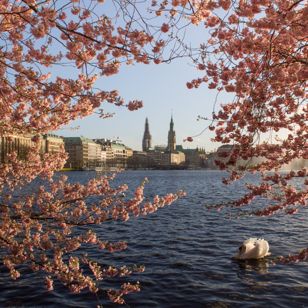Der Frühling ist jetzt endgültig in Hamburg angekommen und die Kirschblüte an der Alster ist in vollem Gange.